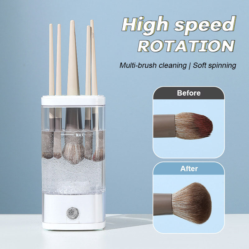 Fortfarande orolig för borstrengöring? Prova den hĂ€r helautomatiska rengöraren för sminkborstar, som rengör snabbt och enkelt kan förvaras, vilket gör din sminktid mer njutbar! đ