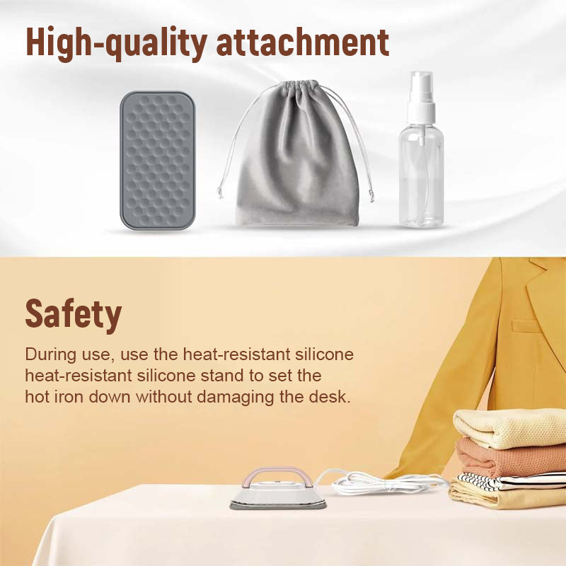 - 【Torrstrykning och enkel användning】 Uppvärms snabbt och håller en konstant temperatur på 150 °C (302 °F) inom 2 minuter, så att du kan börja torrstryka direkt. Under användning kan du använda det praktiska hållbara silikonstativet för att lägga ner det heta strykjärnet utan att skada skrivbordet. Om du behöver stryka kläder med fler skrynklor kan du först spraya lite vatten på dem med sprayflaskan för att göra dem mjukare.