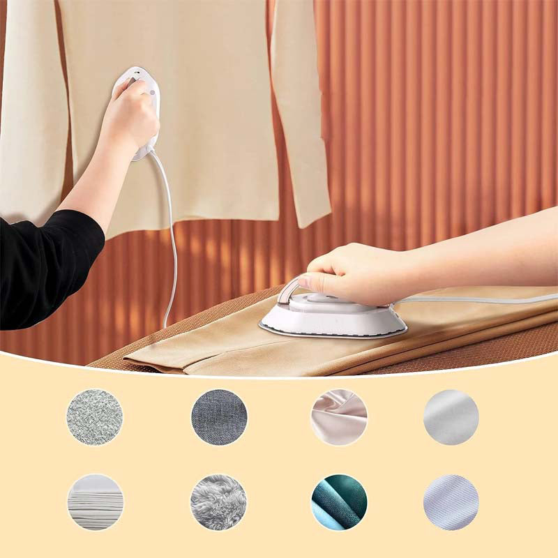 - 【Alla tygtyper】 Dubbelspänningsstrykjärnet är lämpligt för siden, plysch, ull, bomull, linne, polyester, brokad och andra tyger. En resväska, vattensprayflaska och silikonstöd ingår för extra bekvämlighet och skydd. Den kan också användas för värmeöverföring och hantverk av små föremål.