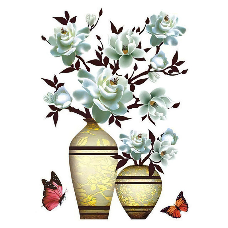 3D Stereo Rose Flower Vas Wall Stickers För Woonroom Bedroom TV Bakgrund Husdecoratie Waterproof Självkadhesive Wall Decors.