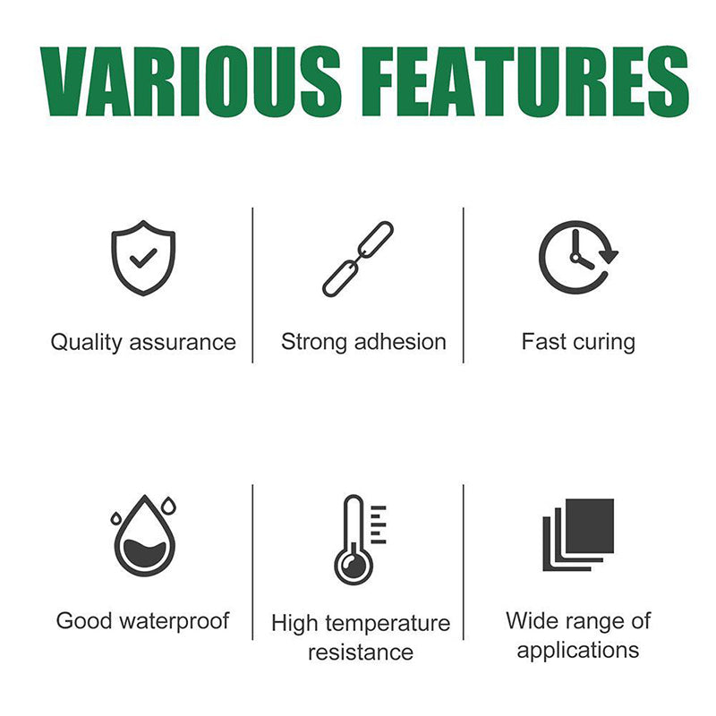 Hållbar, säker och giftfri - Beständig mot värme och kyla (-49°F till +239°F), vattentät och maskinbearbetningsbar. Lösningsmedelsfri, icke-förorenande, icke-korrosiv, anti-aging