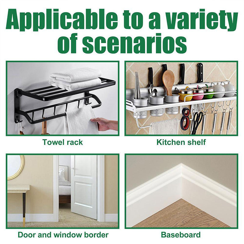 Användning - Frostat glas, marmor, lackerat trä, mjuka metallplattor, kakel, mosaik. Det är bäst att använda ett osynligt väggfäste. och är perfekt för att fästa golvlister, polystyrenlister, fönsterkanter, klädkrokar etc.