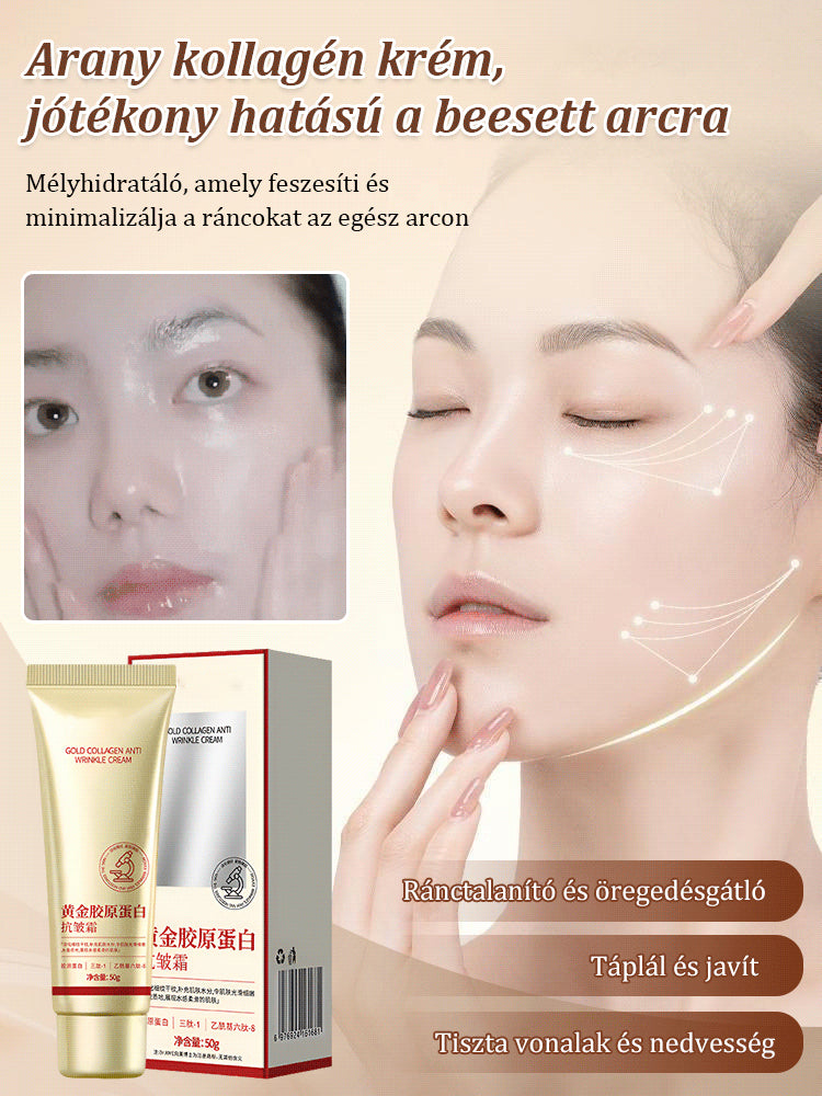 Denna lyxiga kollagenkräm med guld hjälper till att återställa hudens fasthet och minska rynkor genom att ge djup återfuktning och tighten hela ansiktet. Perfekt för att motverka åldrande och få huden att stråla! 🌟