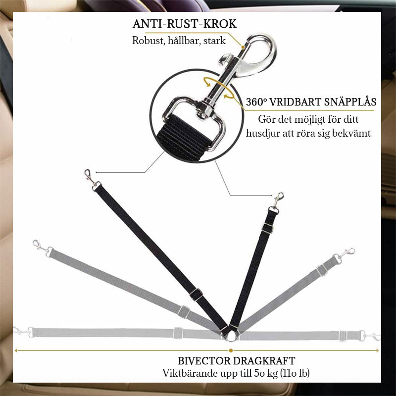 Viktigt Tips: Innan du köper, dubbelkolla att ditt bilsäkerhetsbälte är kompatibelt med säkerhetsbältet för husdjur för att undvika problem vid användning.