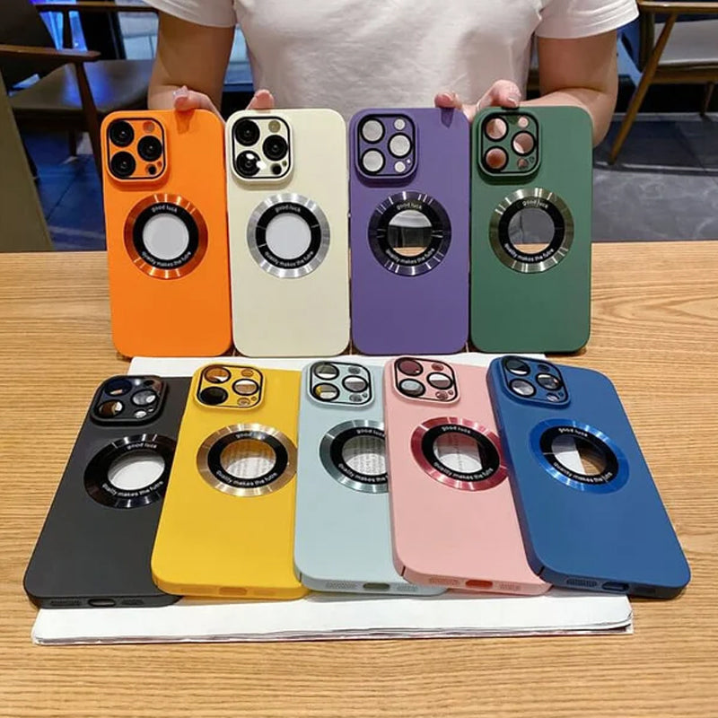 Mobilskal Allt-i-ett Linsfilm Läckagetikett Magnetiskt sug Frostat Komplett paket Skyddshölje