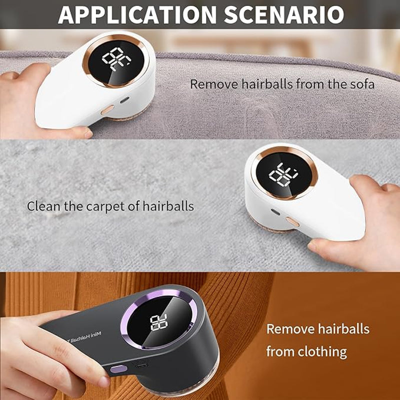 Den är utformad för att ta bort hårbollar från tröjor, rockar, soffor och andra föremål och kan snabbt och effektivt återställa klädernas utseende som nya. Den är utrustad med en digital skärm som visar den återstående effekten i realtid för enkel användning. Oavsett om den är för hemmabruk eller bärs med dig, kan den hjälpa dig att enkelt hålla dina kläder rena och förlänga livslängden på dina kläder.🧶💡