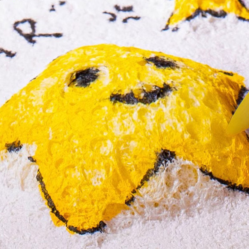 Svampen är gjord av ren naturlig träpulpbomull, helt fri från föroreningar och skadliga ämnen. Den kan användas två gånger och är säker även för barn, vilket gör den perfekt för hela familjen.