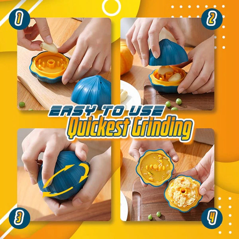 En högpresterande slipanordning alltså designad i ett vitlöksutseende som använder en smart vridningsåtgärd för att krossa 1 eller 2 skalade vitlöksklyftor. Ger dig en perfekt mald vitlök utan ansträngning på nolltid utan risken och bekymmer med att få fingret avskuret. Dessutom erbjuder den dig att fritt rotera verktyget efter din önskan tills du möter din önskade grovhet eller hur fin din vitlök du behöver. Öppna helt enkelt vitlöksanordningen, lägg i en eller två skalade vitlöksklyftor, tryck för att krossa och håll sedan både toppen och botten av krossen för att vrida. Rotera tills vitlöken är finhackad enligt dina önskemål, och allt är klart. Inget behov av farlig knivskärning eller de kraftfulla vitlöksdoftande fingrarna som är svåra att tvätta bort.