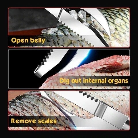 3-i-1-sĂ„gtandsdesignen gör denna fiskskalare mycket effektiv och enkel att skrapa fjĂ€ll med. Ăppna buken/grĂ€va ut/ta bort fjĂ€ll, tre funktioner i ett verktyg.