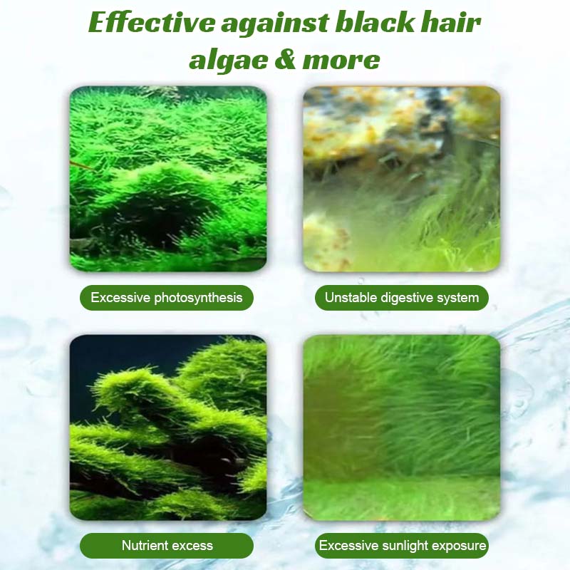 SĂ€g hejdĂ„ till envisa svarta hĂ„ralger, brunalg, trĂ„dalger och andra besvĂ€rliga algsorter! VĂ„r andra generationens algborttagare Ă€r biologiskt framtagen för att rena vattnet, ta bort alger och skydda dina Ă€lskade fiskar đđ§