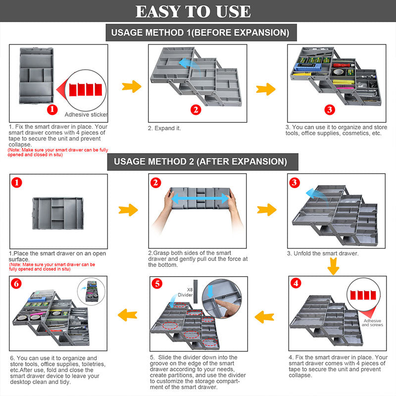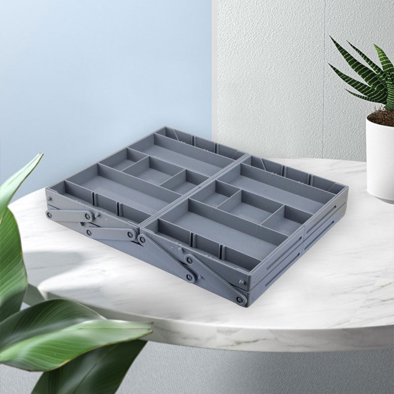 SÀg adjö till röriga bÀnkskivor och stökiga lÄdor med vÄr mÄngsidiga hopfÀllbara organisatör. Denna förvaringslösning Àr utformad för maximal effektivitet och bekvÀmlighet och Àr perfekt för att organisera porslin och silverbestick i köket, förvara smycken, kosmetika och mycket mer.