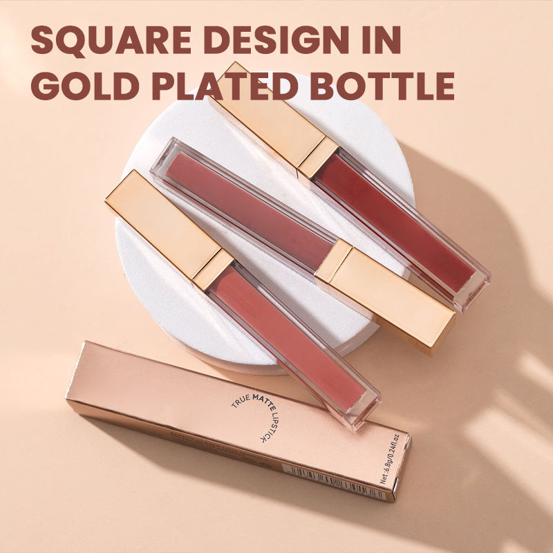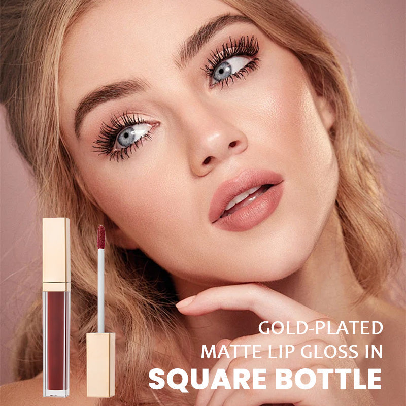 ✨ Guldpläterad matt läppglans i fyrkantig flaska —— Stråla av självförtroende, framhäv din charm! 💋