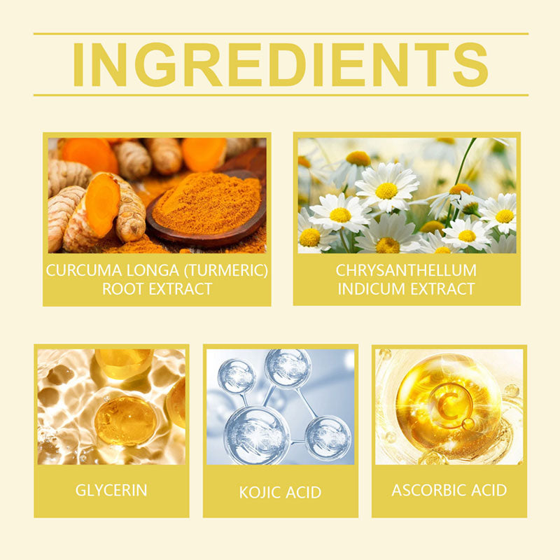 Ingredienser: Glycerin, Gurkmejaextrakt, Kojicsyra, Kamomillextrakt, Vitamin C