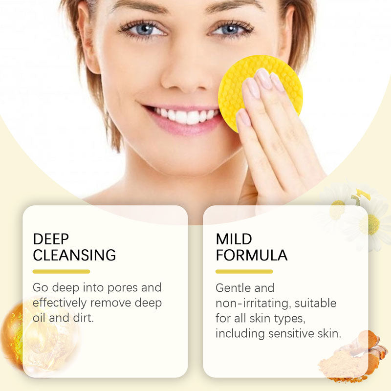 Den skonsamma formulan är lämplig för alla hudtyper, inklusive känslig hud. Ingredienser som glycerin, gurkmejaextrakt och kamomillextrakt säkerställer att huden rengörs utan irritation.