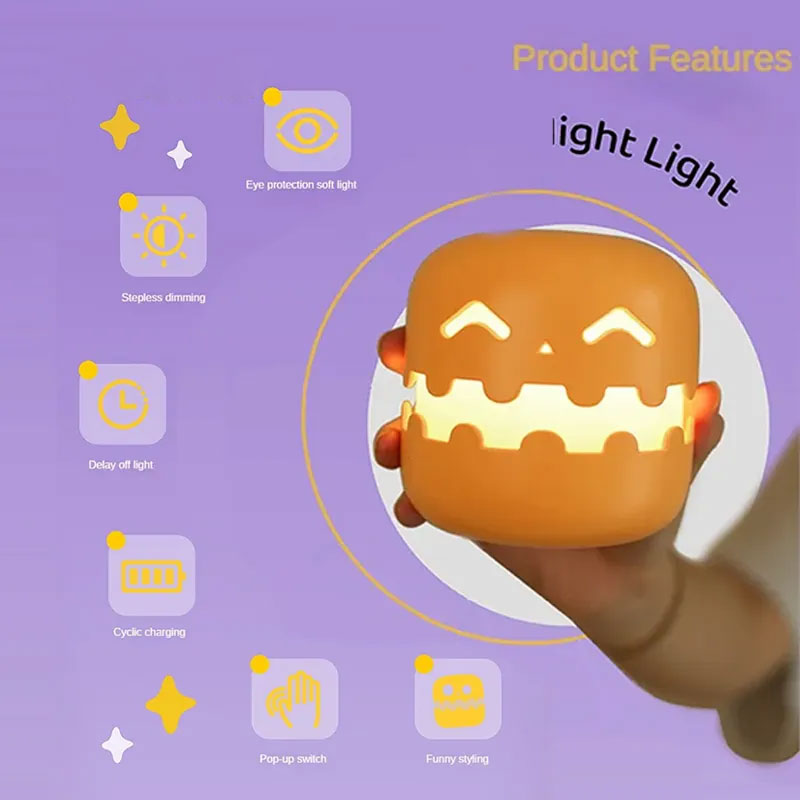 👻🎃 Halloween Press Pumpkin Night Light - Uppladdningsbar rolig pumpalampa som enkelt lyser upp din julstämning! 🔮✨