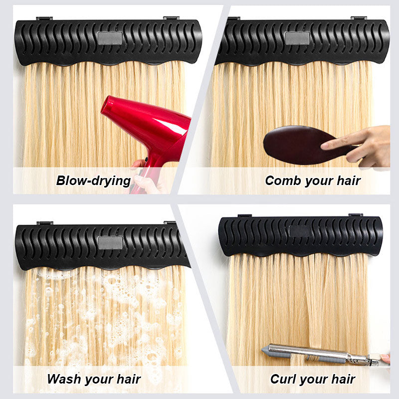 📦 Hängande design: Den hängande designen är lätt att hänga upp på väggen, utnyttjar utrymmet fullt ut och gör det bekvämt att förvara och organisera peruker i frisersalongen.