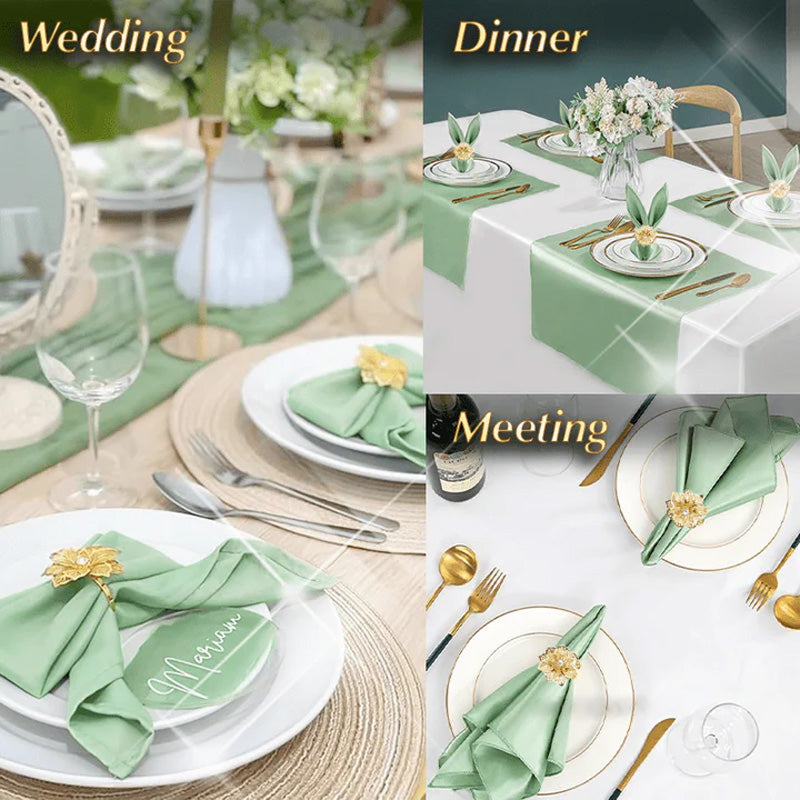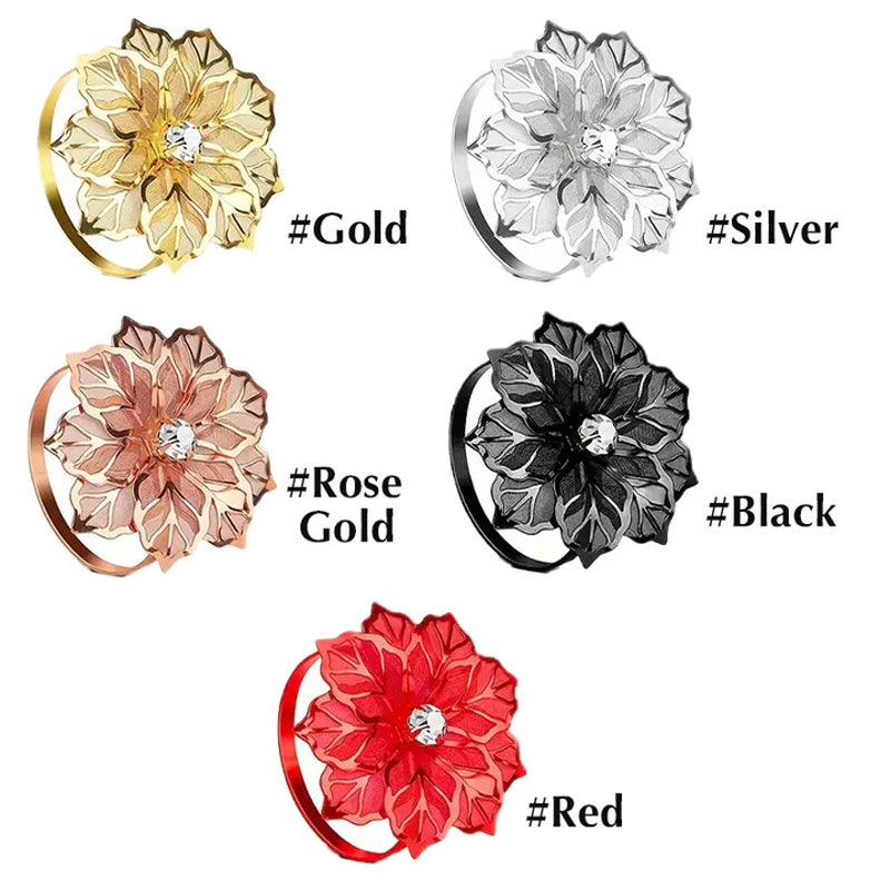 Ett vackert blommigt ringband som kan vridas och hålla linneservetten på plats för att ge en snygg och organiserad presentation. Det gör att du kan hålla handduken lättillgänglig utan att den lossnar eller glider av bordet även före användning. Vad finns det mer? Ringen i den blommiga servetten har en utsökt touch och en gnistrande diamantpärla som kan förhöja alla måltider och dukningar. Den kan också på ett naturligt sätt leverera elegans och lyx som verkligen kan lyfta din vanliga middagsbjudning. Finns i 5 olika färger: guld, silver, roséguld, svart och rött som du kan kombinera med alla servetters färger och stilar.