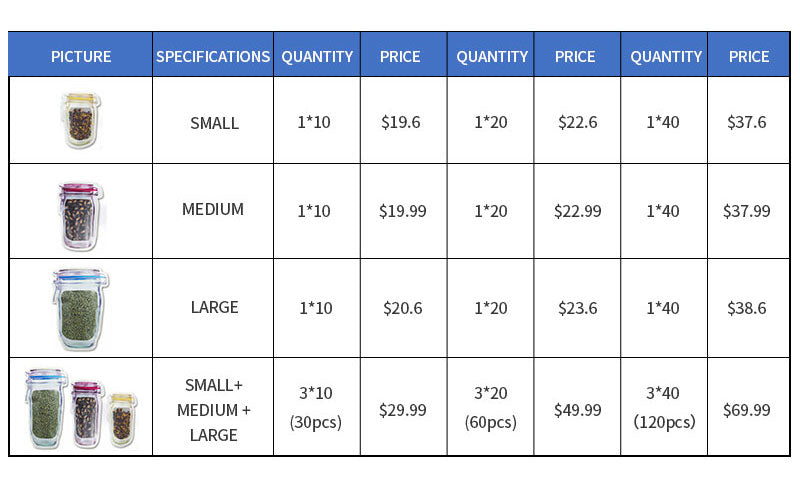 - Mason Bottle Ziplock-påsar * 10/20/40