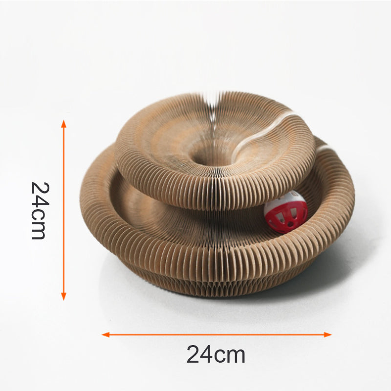 Den ständigt föränderliga orgelkattskrapstolpen omger klockbollen, vilket gör att katter kan visa sin sanna natur och leka så mycket de vill.
