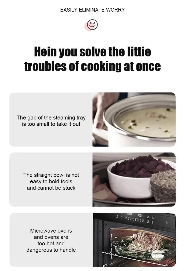 SAFE &SAFE ANTI-SCALING: Den skyddar dina händer från direktkontakt med den heta skålen. Det förhindrar också oavsiktliga halkningar eller spill, vilket garanterar en säker matlagningsupplevelse.