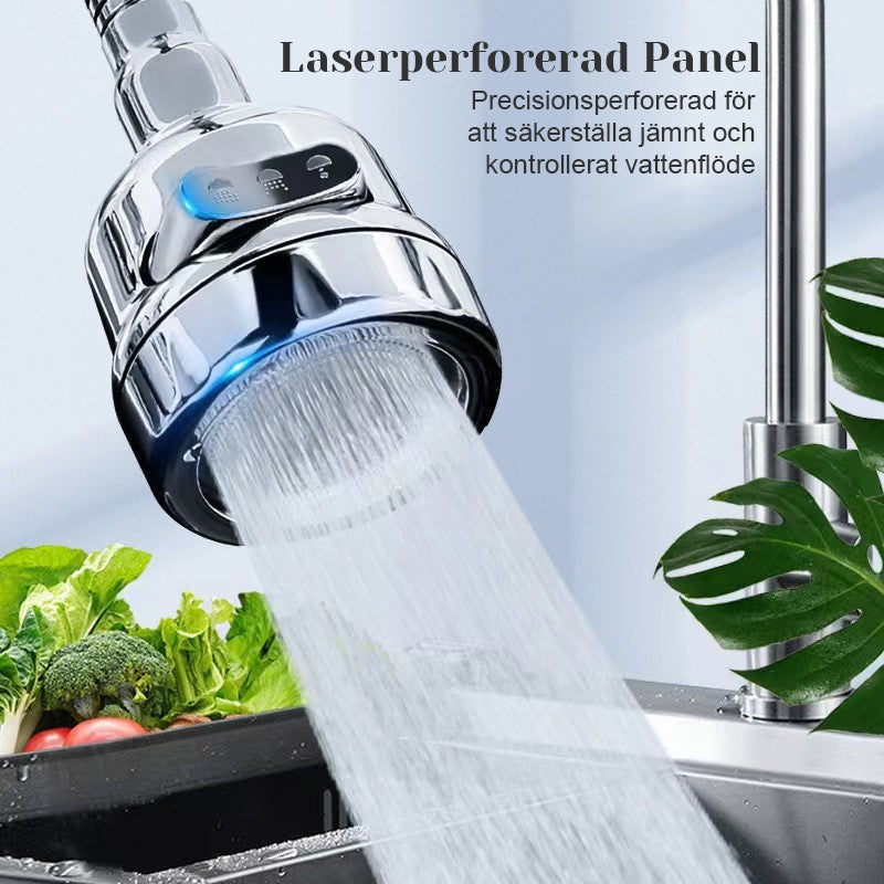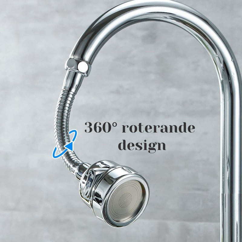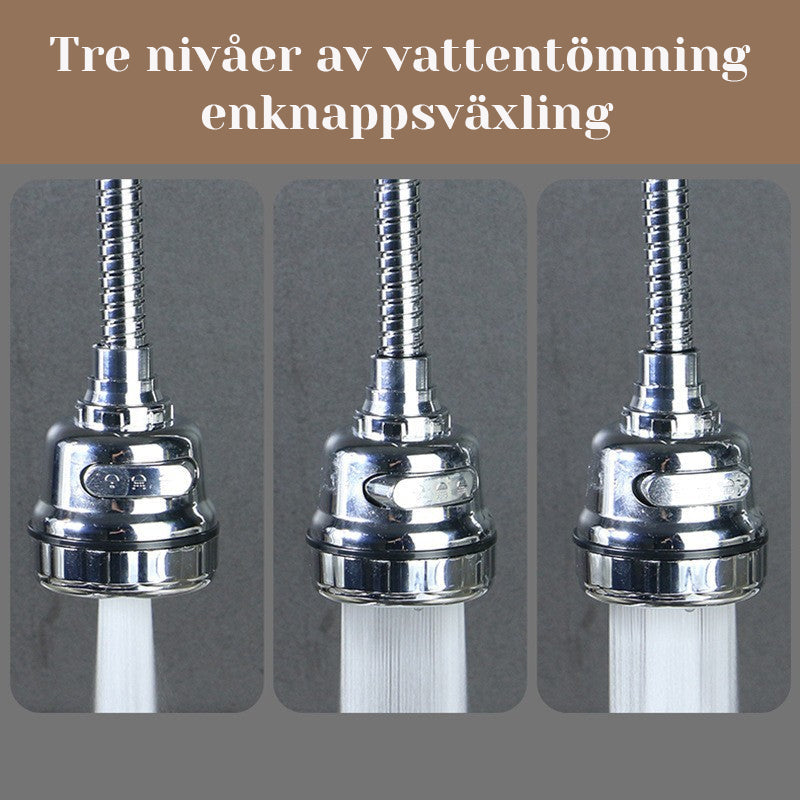 Funktioner: Tre justerbara vattenflödeslägen, 360° rotering, stänkskydd