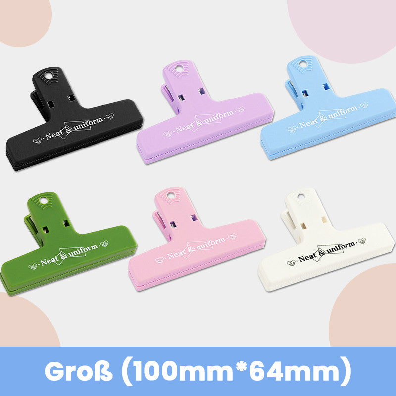 Clipsen för matpĂ„sar Ă€r idealiska för att sĂ€kert stĂ€nga olika pĂ„sar för snacks, bröd eller chips. FĂ€rskheten bevaras och du sparar utrymme i ditt kök! đđŹđ„