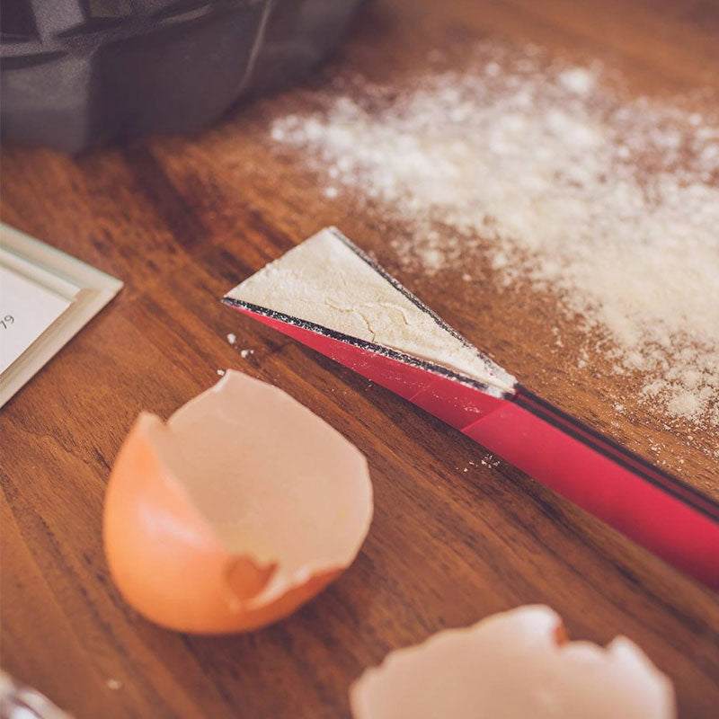 De rundade kanterna är perfekta för att skopa och breda ut mjukare material som smör, frosting eller vispgrädde. Och när du är klar trycker du bara platt på den och förvarar den.