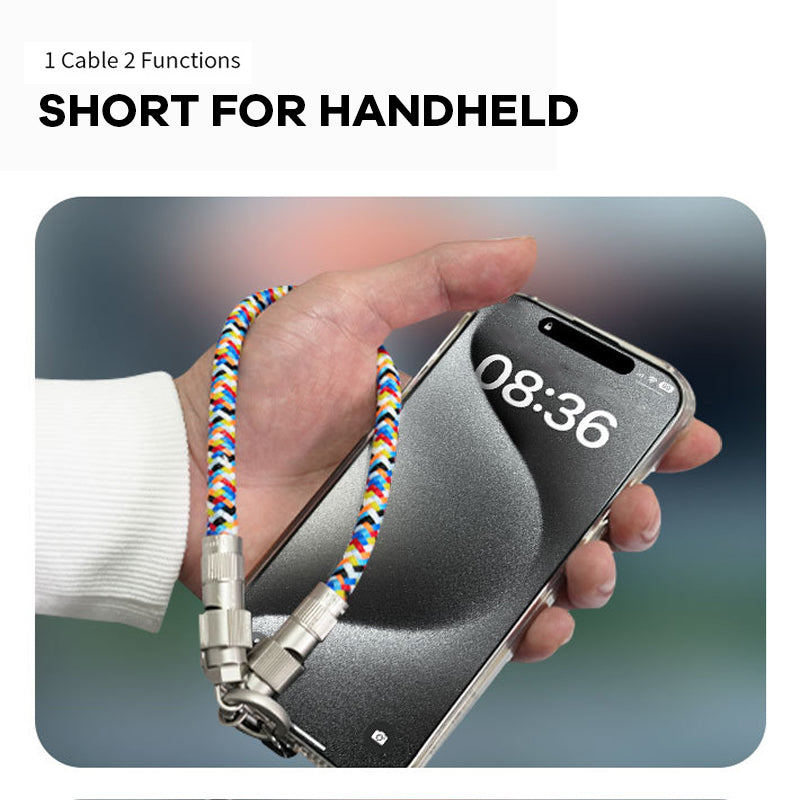 Säker och hållbar: Spiraldesignen ger flexibiliteten att enkelt växla mellan laddnings- och bärremsfunktioner. Designad med ett zinklegeringsspänne, säkerställer det att din telefon förblir säkert fäst och förhindrar oavsiktliga fall.