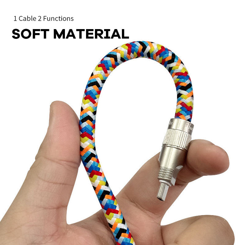 Håll dig uppkopplad och elegant med vår 2-i-1 uppladdningsbara datakabel med telefonlinsarmband! Detta innovativa tillbehör kombinerar komfort och funktionalitet och är därför ett måste för alla som reser mycket. Med en slimmad design som fungerar som ett moderiktigt armband och pålitlig datakabel, behöver du aldrig oroa dig för att glömma din laddare hemma igen. Perfekt för resor, utomhusäventyr eller vardagsbruk!