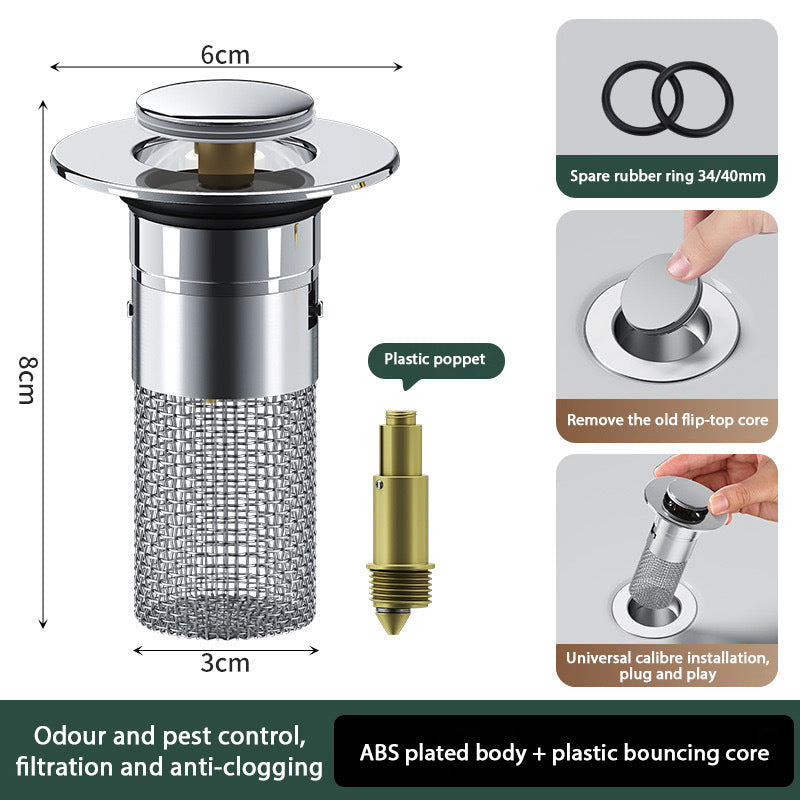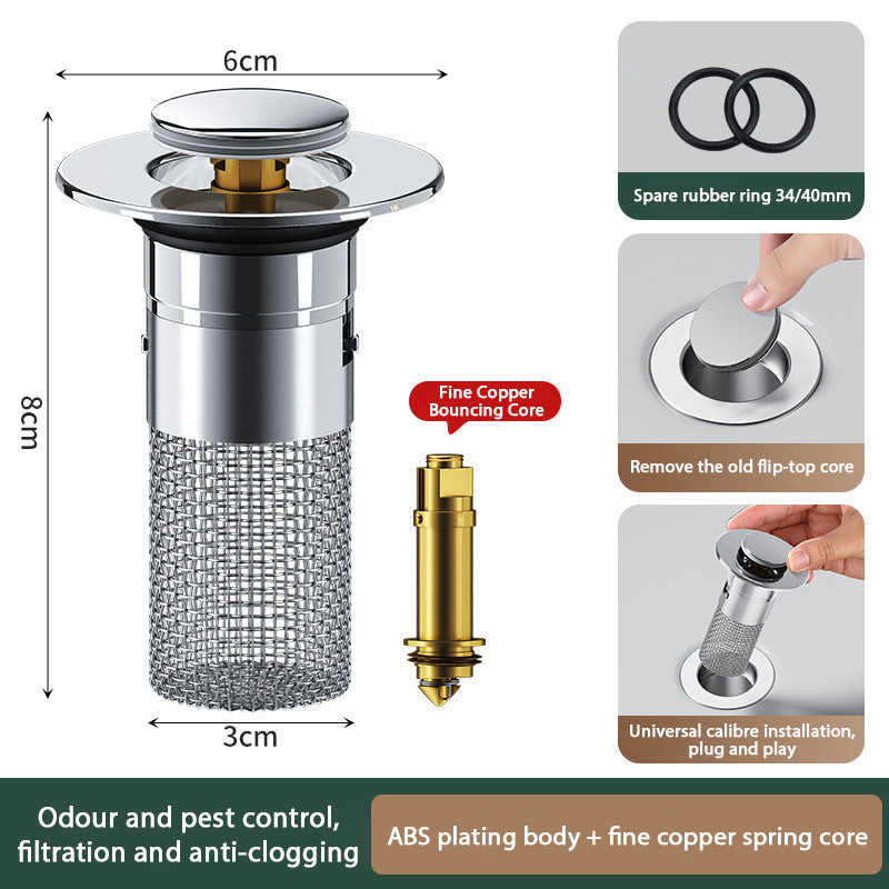 Lätt att installera: Vem som helst kan installera popup-avloppsfiltret eftersom det har en enkel struktur och inte behöver några verktyg. Ta bara ut den gamla avloppspluggen och sätt in den studsande kärnan.
