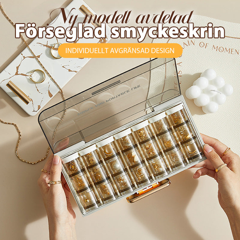 Upptäck vårt nya förseglade smyckeskrin med avdelade fack som håller dina smycken organiserade och lättillgängliga.