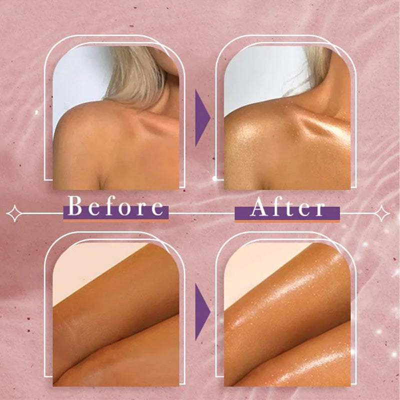 Belys din hud med den goda, allmänna spridningen, bara med denna verhelderande glitterspray för kroppen!