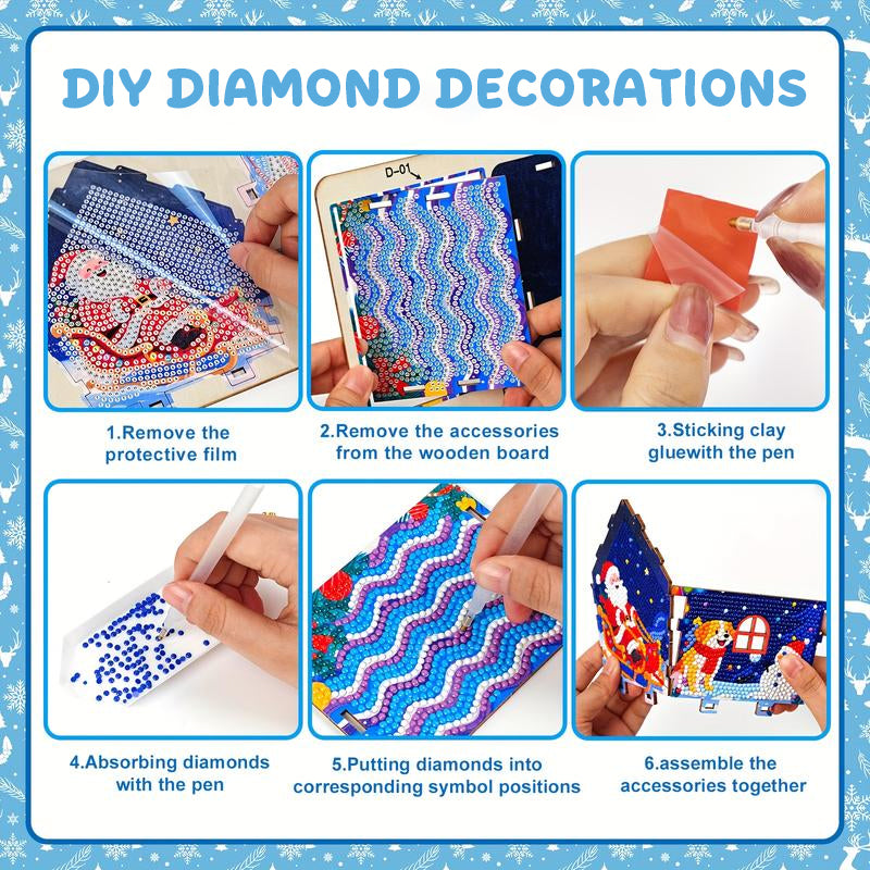 Skapa ditt eget glittrande mästerverk med detta 5D-diamantmålningskit. Processen innebär att du applicerar färgade strassstenar på ett fördesignat mönster av en trästuga, vilket ger ditt hem en festlig stämning. ✨🎄