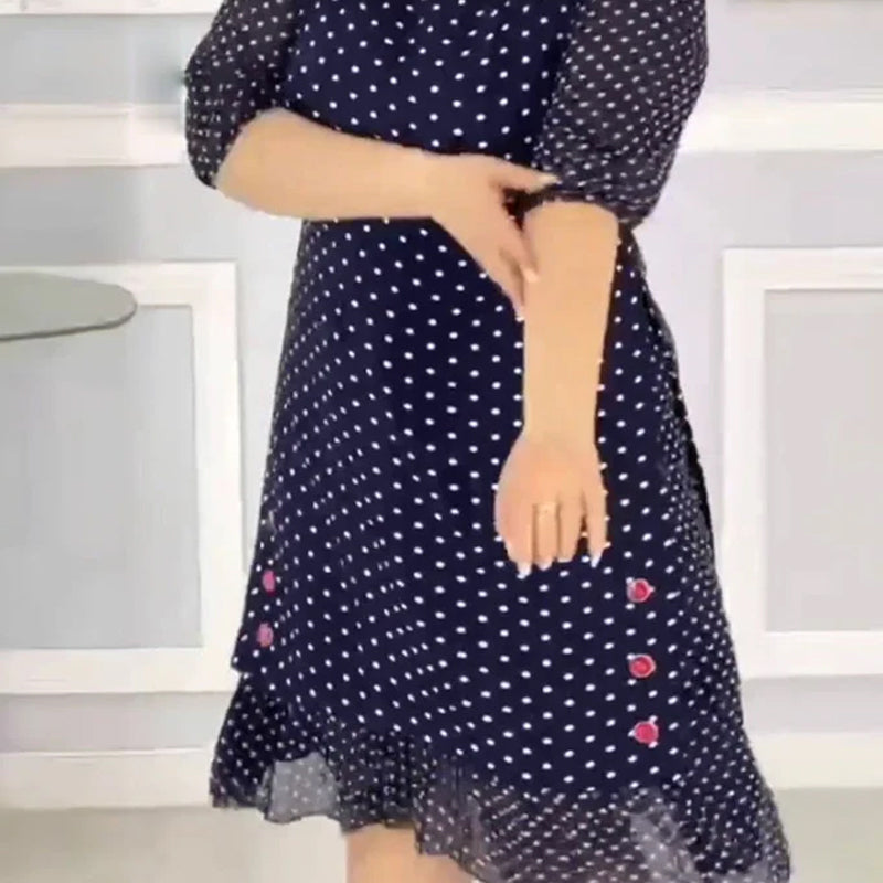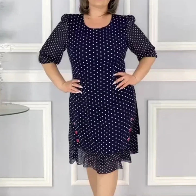 âš LĂ„t denna pĂ€rlpunkt rundhalsade klĂ€nning bli din perfekta sommarstil och förena elegans och komfort! âš