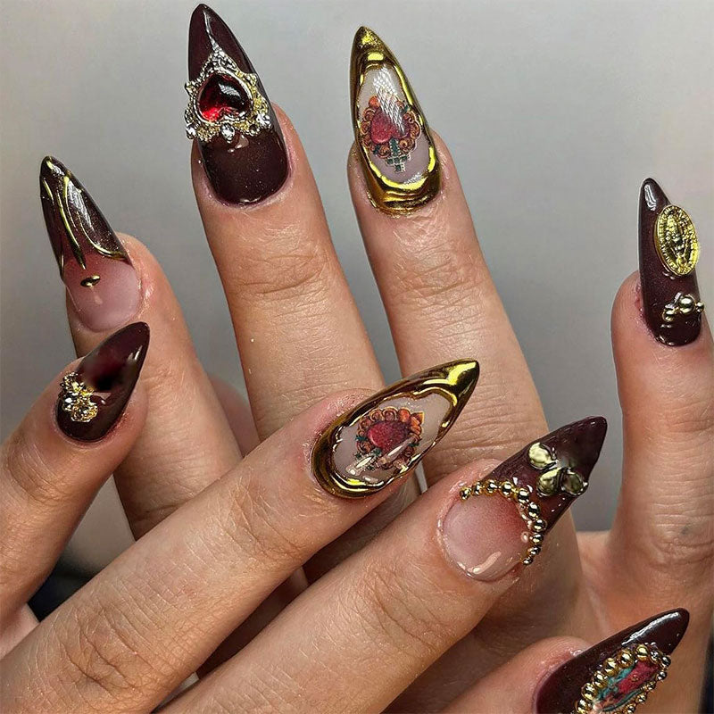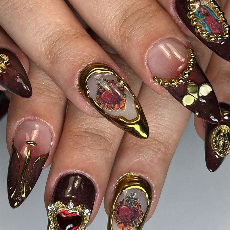 Från hjärtformade ädelstenar till heliga motiv, varje nagel är ett konstverk som får dina händer att stråla.✨