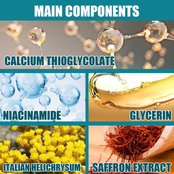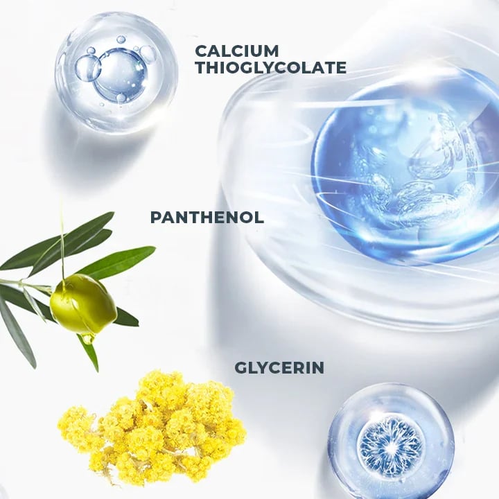 KĂ€rningredienser: Kalciumtioglykolat, Stearylalkohol, Niacinamid, Glycerin, Italiensk helichrysum, Bisabolol, JĂ€stextrakt, Saffransextrakt, Panthenol