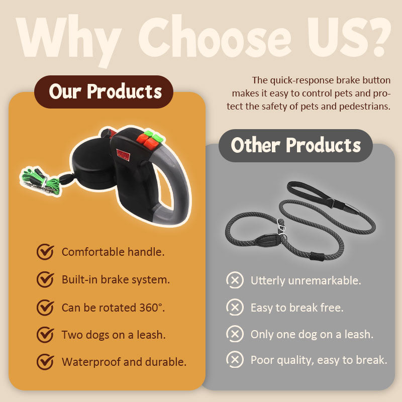 - 🏙️ Hundpromenader i stadsmiljö: Stadsgator och trafikerade vägar, bättre kontroll över husdjur genom teleskopfunktionen för att undvika nödsituationer.