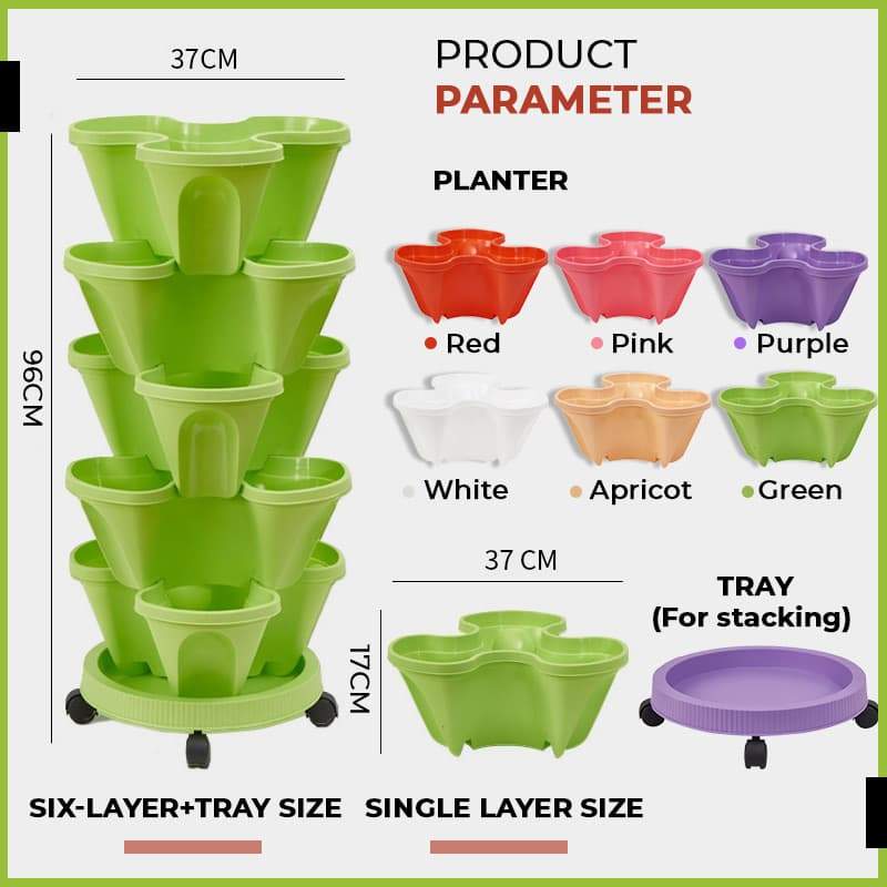 Ställ ut denna staplade plantering i din balkongträdgård och plantera dina favoritväxter som jordgubbar eller blommor!