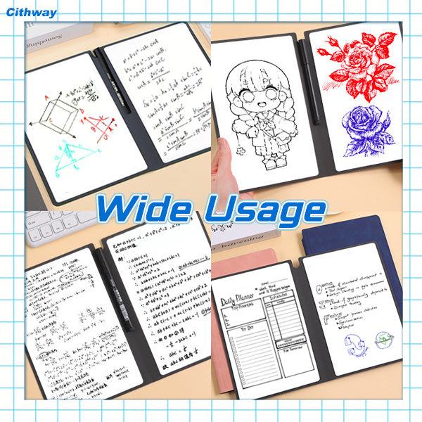 Denna smarta whiteboard-anteckningsbok är superlätt som utan ansträngning kan ta den med dig när som helst, var som helst utan att tynga ner dig. Den har också en smal och A5-storlek som snyggt kan passa in i ryggsäckar, väskor, skolväskor och sådant samtidigt som du sparar mer utrymme för andra väsentliga saker. Den perfekta raderbara anteckningsboken för studenter, instruktörer, hemarbete, kontorsplanering, brainstorming, teckning, lämna små meddelanden och till och med för reseplanering eller shopping. Premiumkvalitet