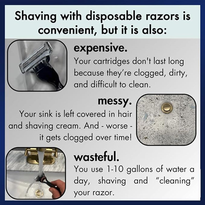 Att använda engångshyvlar är bekvämt, men det åtföljs ofta av problem med igensättning av blad och rengöring. Vår rengöringsartefakt löser dessa problem!