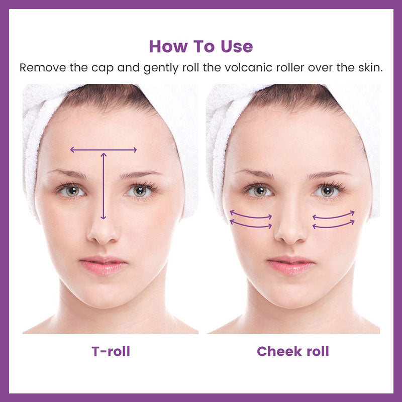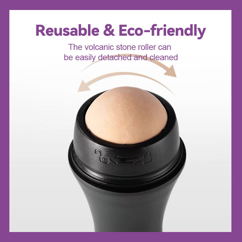 NATURLIG VULKANSTEN 🗻: Tillverkad av mineralrik vulkanisk sten, denna roller absorberar effektivt olja och minskar porstorleken, vilket ger din hud en slät, matt finish.