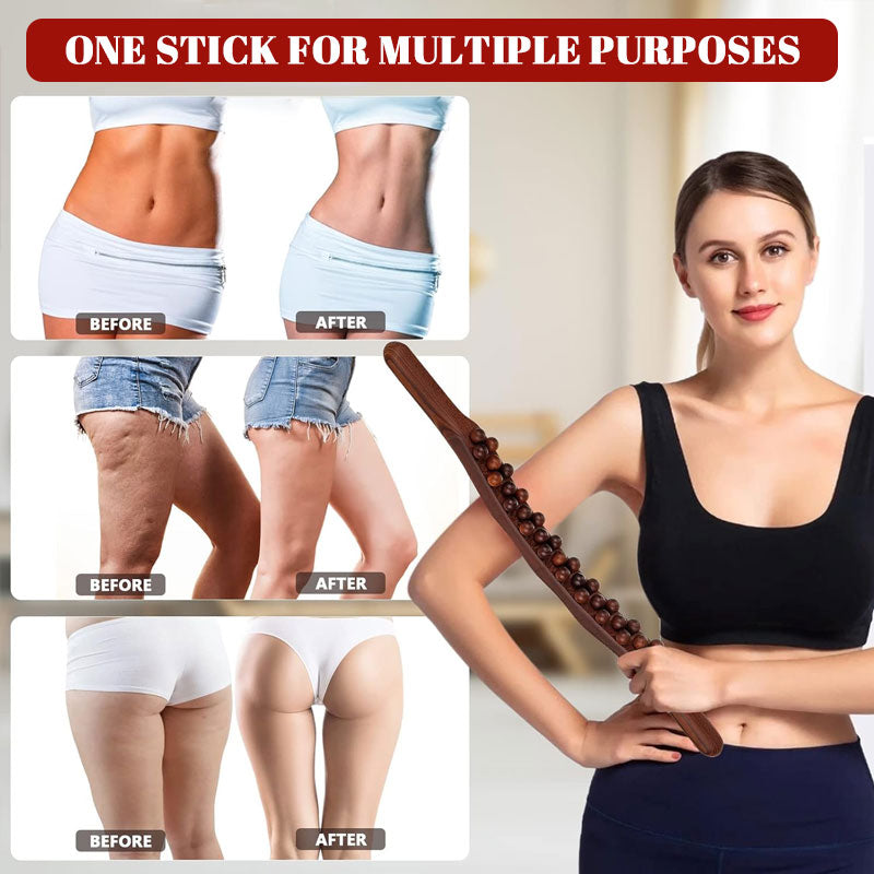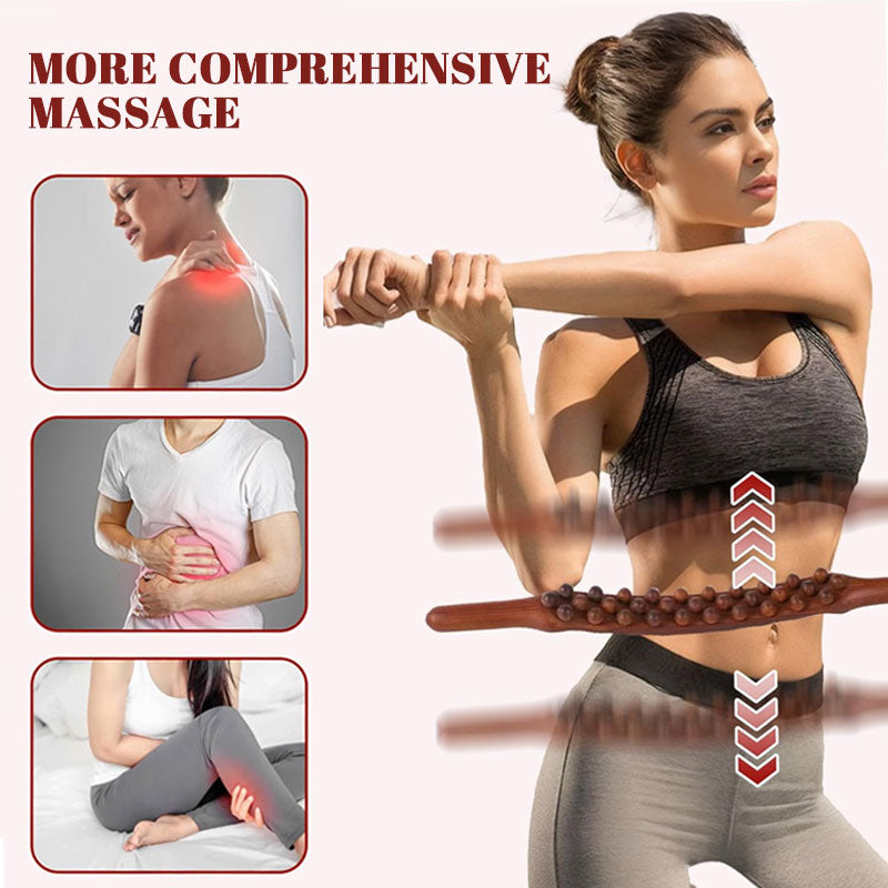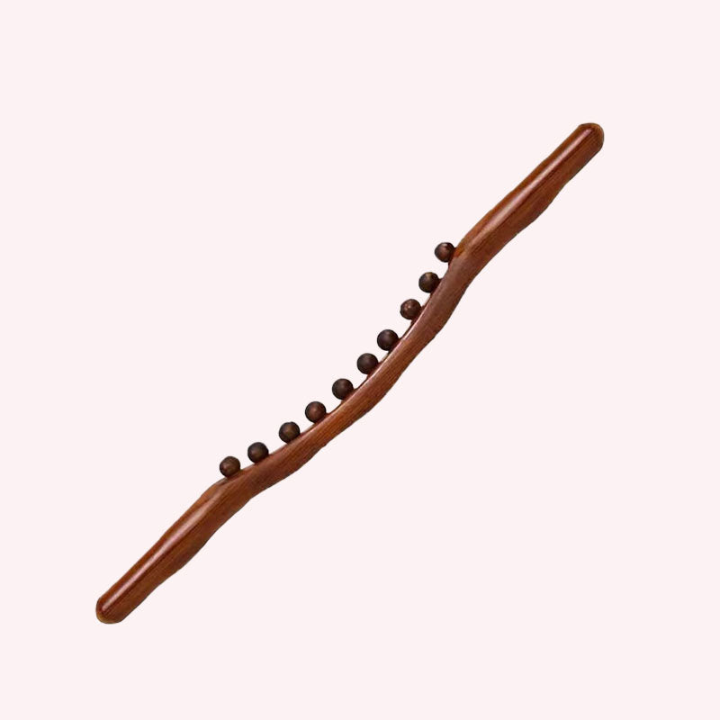 Massagestav i bokträ | Dubbel rad med kulor för magmassage och öppning av meridianerna