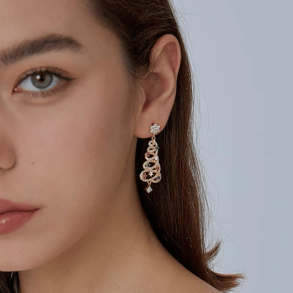 💎Örhängen, designade i en jultema,är utsmyckade med små diamanter i rött, grönt och guld.