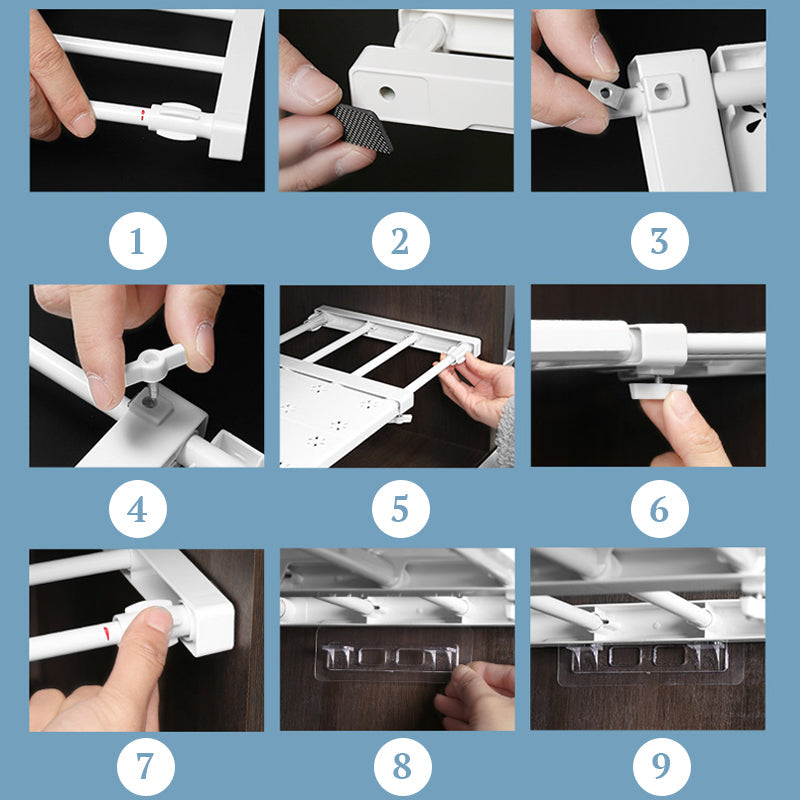 Inget behov av att slå hål + dubbla rader lager stöd teleskopiska skiktade skiljeväggar: 10 sekunders installation, sparar tid och ansträngning