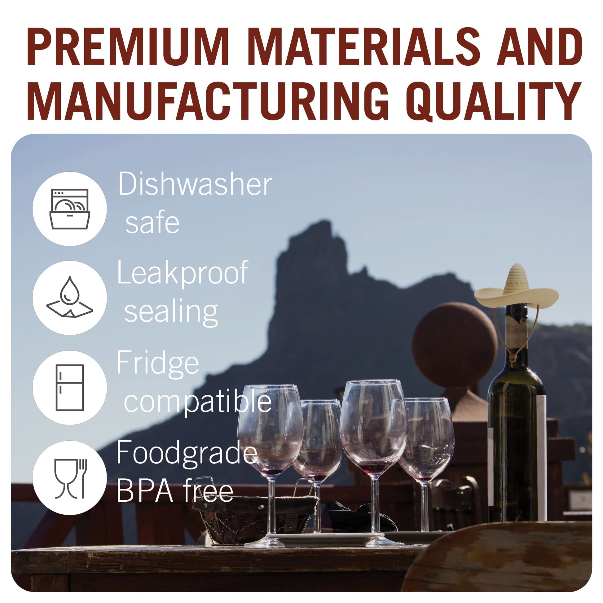 LÄCKAGESÄKER OCH SÄKER. Den här vinproppen i silikon förseglar flaskan på ett tillförlitligt sätt, gör den lufttät och förhindrar att vinet eller dess flyktiga aromer läcker ut. Flasklock i silikon är ett särskilt bra val eftersom de är flexibla och kan passa olika flaskor. Dessa söta vinproppar kan också fungera som champagneproppar: håll bubblorna inne! Materialet som varje vinpropp i setet är tillverkat av är också livsmedelsgodkänt, BPA-fritt och tål maskindisk: hälsosamt och bekvämt!