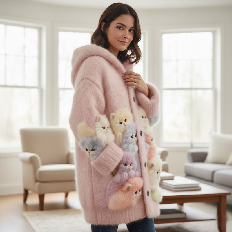 Varje katt är inpräglad i livfull 3D – de ser ut att hoppa rakt ur tröjan! Oavsett om du gillar svarta katter, rödhätta eller fluffiga perser, det finns en design som träffar din kattkärlek på prick.