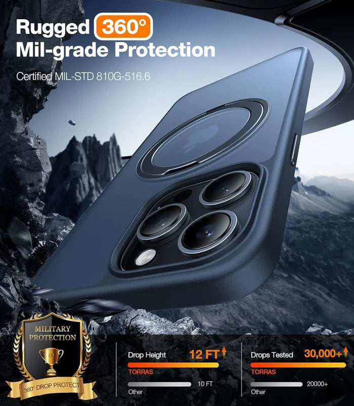 - â[360°Rotatable Ring Flexible Kickstand] Flexibelt fokus / portrĂ€tt och roligt / horisontellt lĂ€ge för att öka din effektivitet hemma och pĂ„ sprĂ„ng.det svarta titan iPhone 15 pro max telefonfodralet integrerar magneter, 360° roterbar ring & kickstand och skydd av militĂ€r kvalitet, allt pĂ„ en gĂ„ng.fodralets ring genomgĂ„r över 30 000 öppna / stĂ€ngda tester under hela design- och tillverkningsprocessen.prisbelönt teknik skyddar effektivt din telefon vid oavsiktliga droppar och stötar.