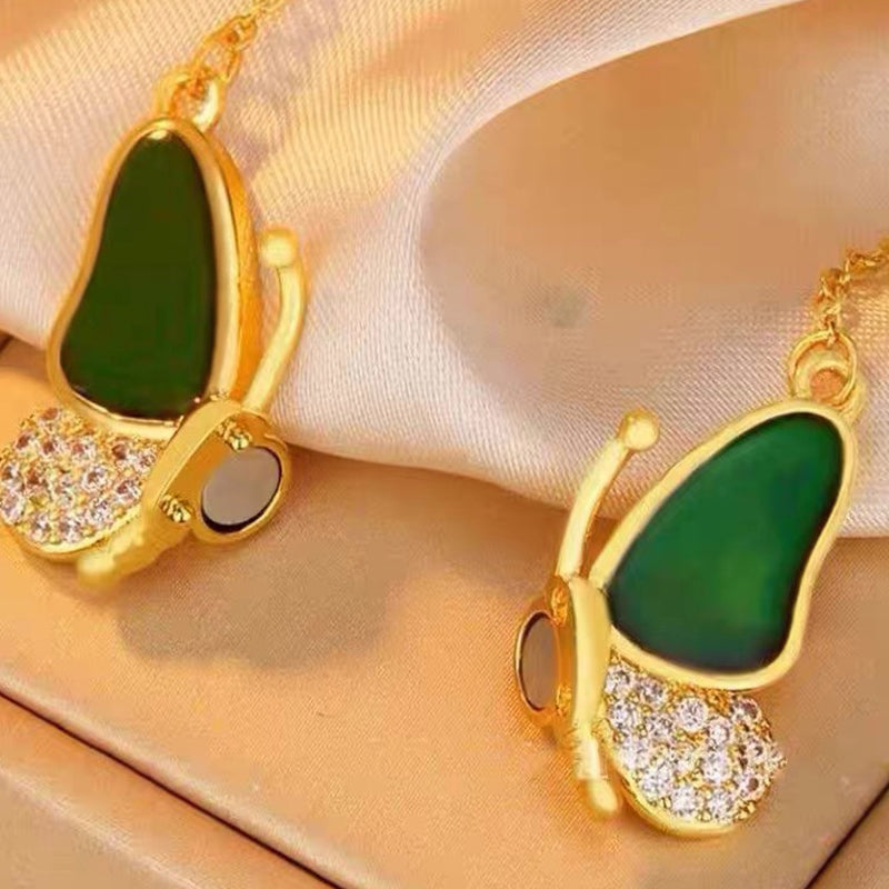 Upplev förvandlingens magi med vårt Color-Changing Butterfly Necklace. Se när fjärilshängsmycket skiftar färg efter din kroppstemperatur och avslöjar ett kalejdoskop av nyanser som återspeglar din unika energi och stil.