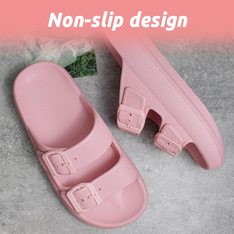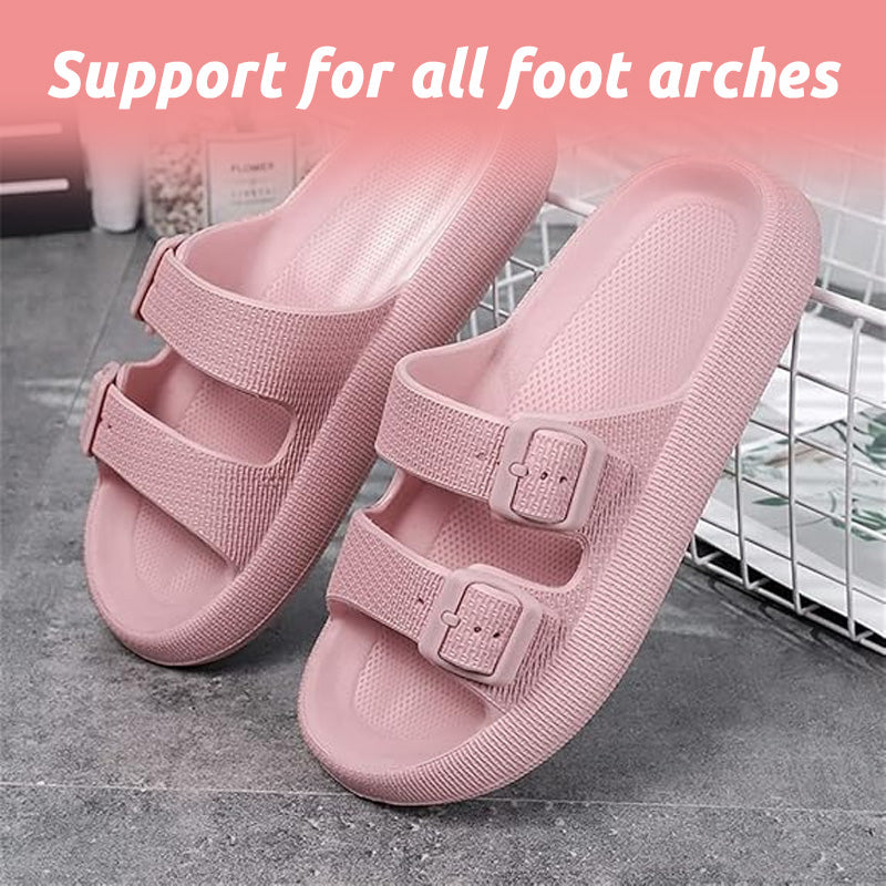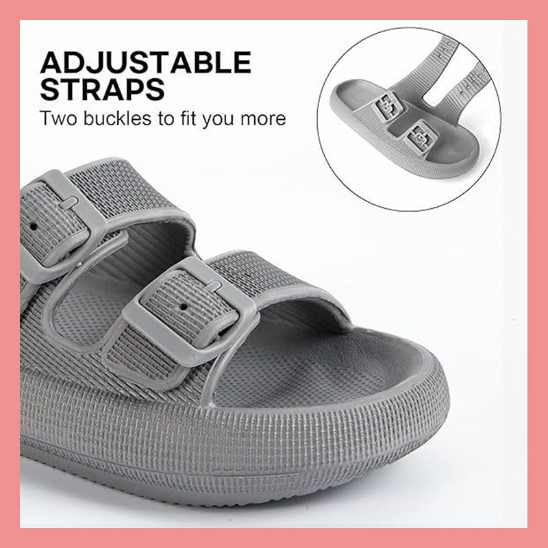 Justerbara remmar för personlig passform: 🔧 Två justerbara spännen låter dig anpassa passformen för att säkerställa att tofflorna sitter bra och säkert på fötterna.
