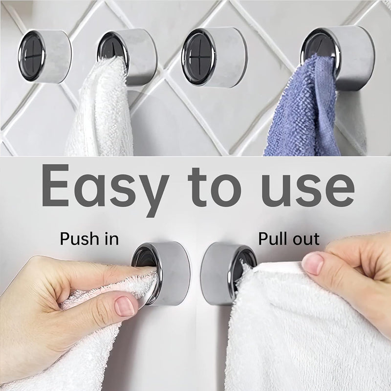 🛠️ Användning med en hand: Säg adjö till att fumla! Tack vare den lättanvända designen kan du enkelt hänga upp eller ta bort föremål med bara en hand. Perfekt för hektiska kök, badrum eller andra utrymmen där bekvämlighet är nyckeln.